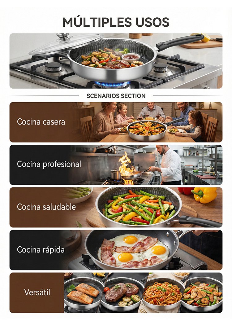 ✨ Distribución de calor comparable al hierro fundido: maximiza el sabor original y los nutrientes de los alimentos.
