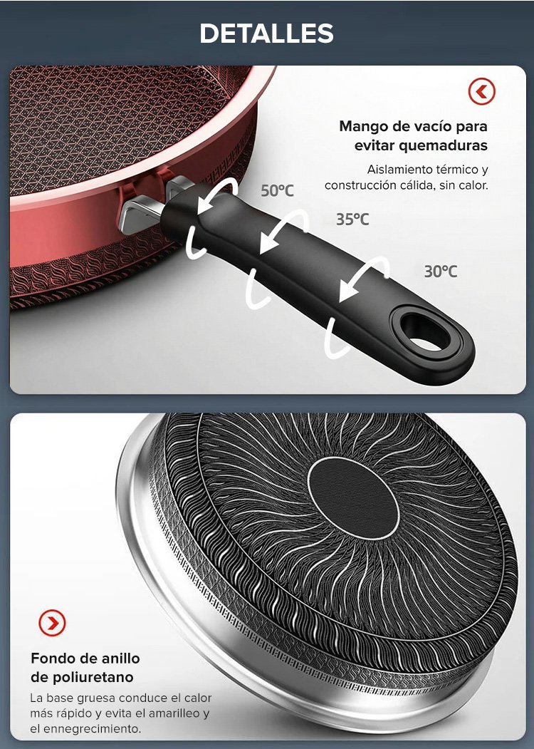 ✨ 0%recubrimientos químicos. Reduce el humo un 80% y ofrece un efecto antiadherente natural.